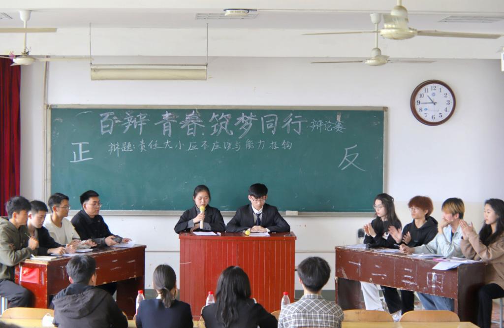 为丰富同学们的课余生活,加强学风建设,锻炼同学们的应变、表达能力,在全院范围内形成勤于思考、善于思辨、敢于表达的良好氛围,4月2日下午在资环楼502教室举办“百辩青春,筑梦同行”主题辩论赛,2022级学生参与本次辩论赛。