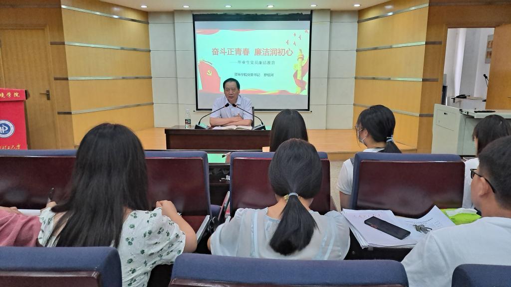 5月31日,澳门六合彩开奖网 在影像厅开展了毕业生党员廉洁教育活动,院党委书记罗绍河以《奋斗正青春,廉洁润初心》为主题给即将离校的毕业生党员上了大学“最后一堂党课”,院党委副书记、毕业班辅导员和毕业生党员代表参加。