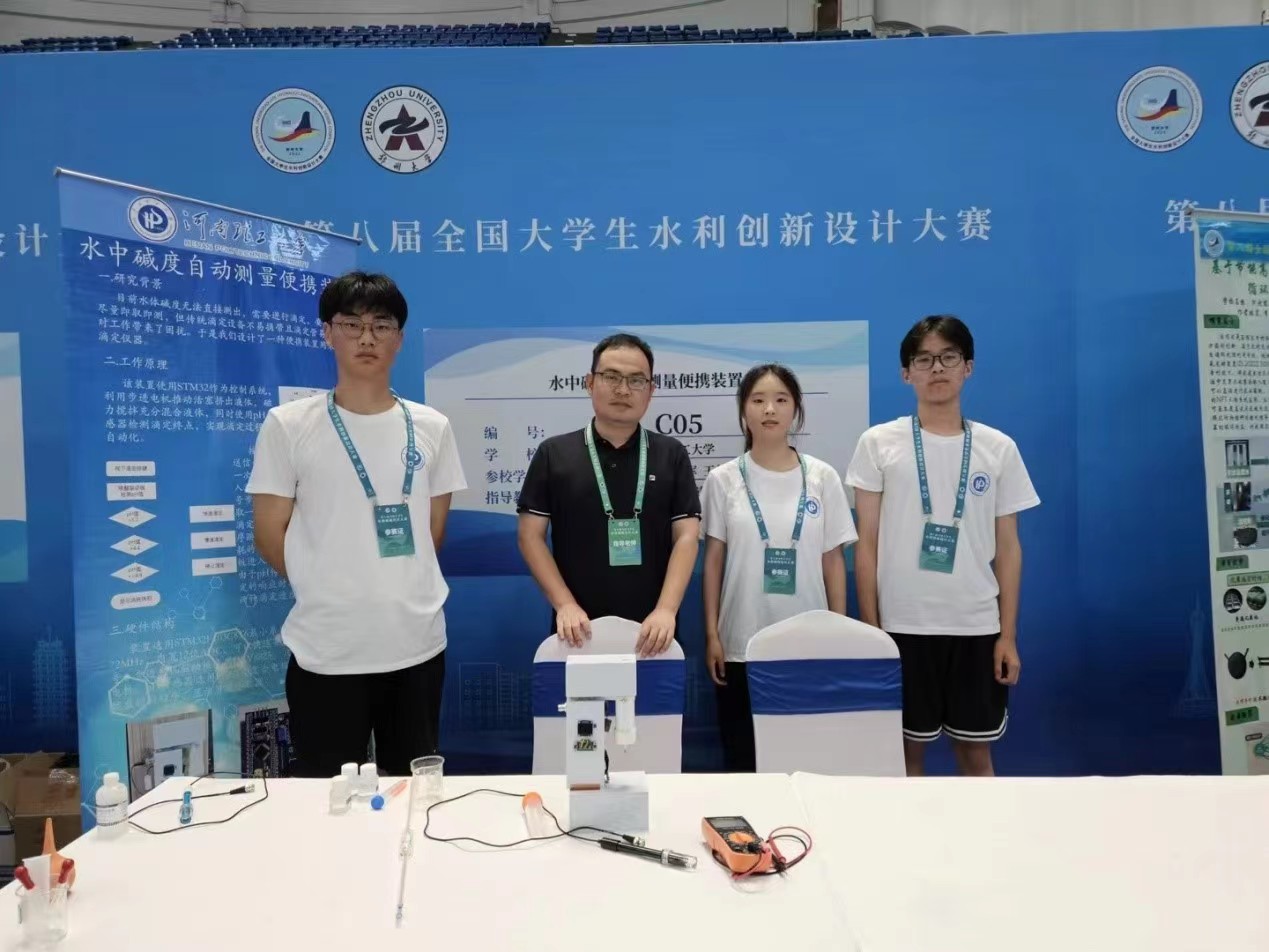 第八届全国大学生水利创新设计大赛以“水利高质量发展”为主题,要求参赛学生利用多种技术围绕新阶段水利高质量发展进行实物作品的创新设计与制作,注重节水优先、人水和谐、可持续发展及新技术的应用。大赛共有来自全国119所高校的320项项目报名参赛。经网络初评,共选拔出来自95所高校的156组作品进入现场决赛。经过作品演示、分组答辩、复赛答辩等环节,最终,由黄平华、赵彦琦老师指导,齐明等同学设计的作品《智能巡航——太阳能水环境监测清洁联动设备》;李洁祥、李建林老师指导,孙路琪等同学设计的作品《水中碱度自动测量便携装置》荣获大赛一等奖。由姬红英、李建林老师指导,刘嘉乐等同学设计的作品《一体式智能底泥原位无人采样船》荣获大赛二等奖。