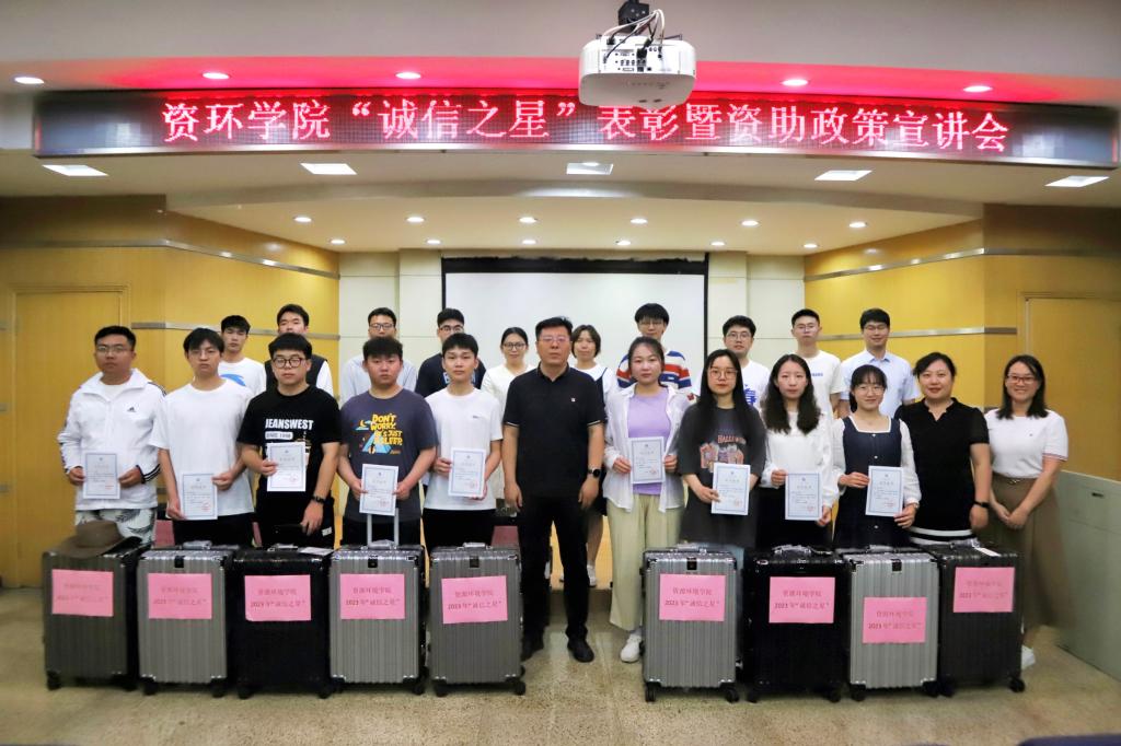 在资环楼影像厅开展“诚信之星”表彰暨高校助学贷款政策宣讲会,党委副书记孙付伟、各年级辅导员、“诚信之星”学生代表和2021级、2022级学生代表参加会议。会议由学工办副主任张娜主持。