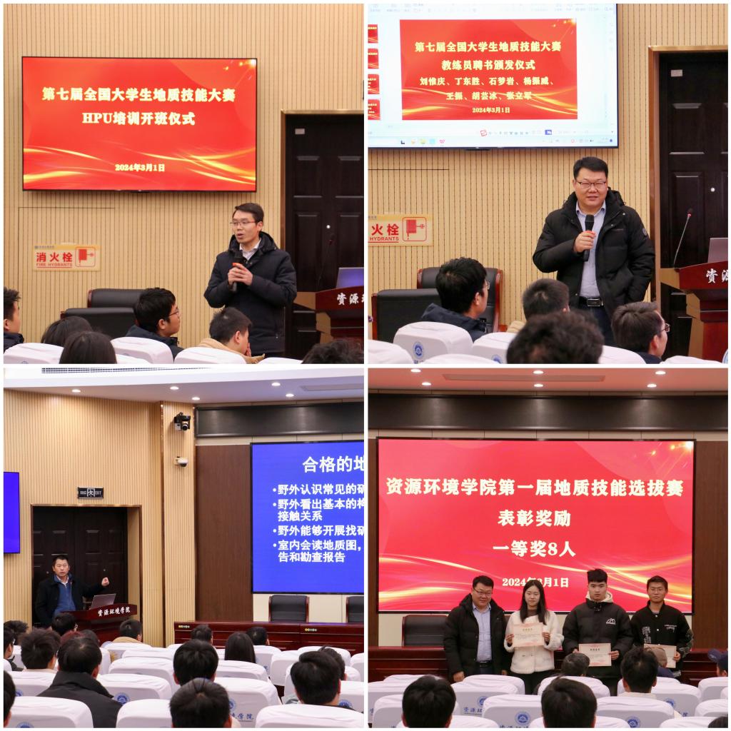 于3月1日在资环楼第Ⅰ学术报告厅举办第七届全国大学生地质技能大赛校内培训班开班仪式,全体指导教师及参赛学生参加此次活动。