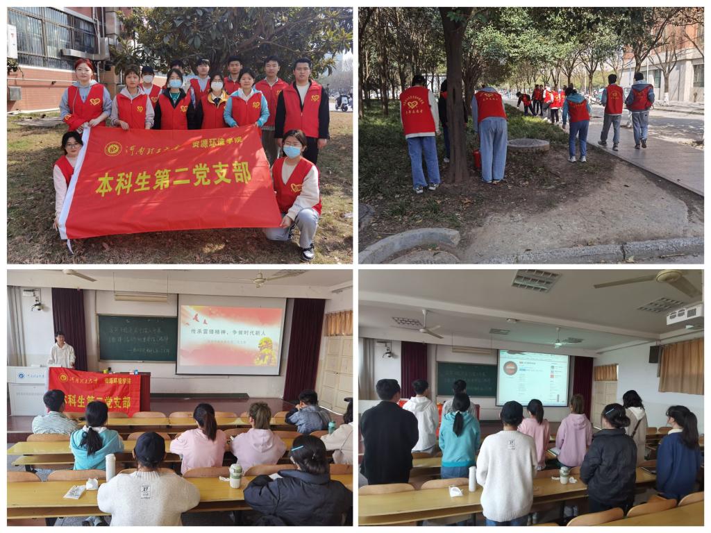本科生第二党支部全体成员在校内开展了“学雷锋,树新风”主题党日活动,旨在大力弘扬雷锋精神和“奉献、友爱、互助、进步”的志愿服务精神,促进支部同志思想觉悟的不断提高,进一步弘扬雷锋艰苦朴素的优良作风。