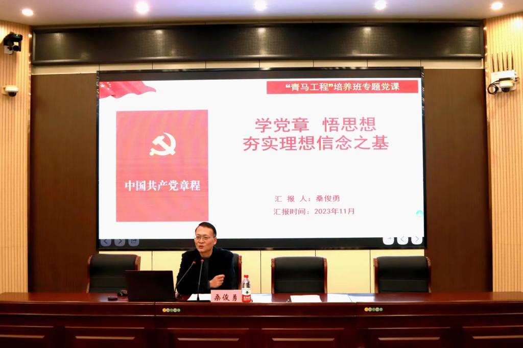 开班仪式在庄严雄壮的国歌声中拉开序幕。首先,主席台就座领导为第三期“青马工程”培养班结业学员颁发证书,老学员向新学员授班旗,第三期“青马工程”培养班优秀学员代表和第四期“青马工程”培养班新学员代表分别进行发言。接下来,桑俊勇向各位顺利结业和即将接受培训的学员表示热烈的祝贺,并对“青马工程”学员提出三点希望:一是要思想清醒、信念鉴定,做一个有方向、有目标、有追求的人;二是主动作为、敢于奋斗,做一个有格局、有担当、有情怀的人;三是正心明道、怀德自重,做一个有正气、有底气、有朝气的人。最后,仪式在《中国共产主义青年团团歌》中落下帷幕。开班仪式结束后,桑俊勇为学员们作了以《学党章 悟思想 夯实理想信念之基》为主题的专题党课。