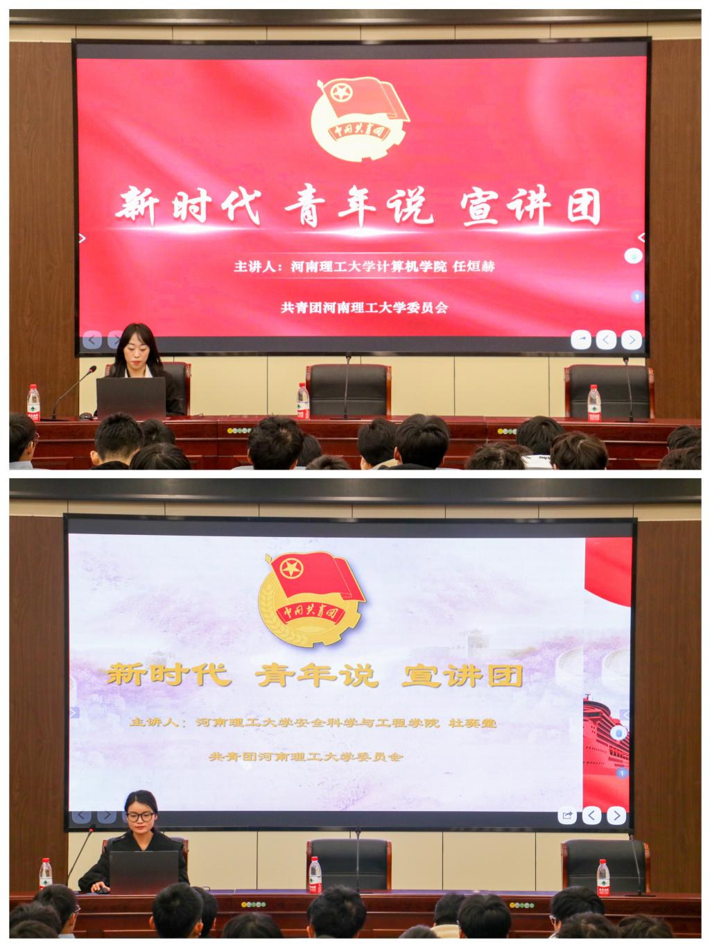 宣讲团成员杜奕莹以《传承五四精神 勇担青春使命》为主题,为同学们讲述了五四运动的精神起源和深刻内涵,引导青年向榜样学习,接过五四精神传承的接力棒,练就过硬本领、激扬青春风采,把奋斗的足迹镌刻在实现中华民族伟大复兴的征途上。任烜赫以《亿往昔英杰 学时代榜样 做强国一代》为主题,通过追忆时代英雄事迹,鼓励青年学子向榜样学习,争做时代先锋,不负时代、不负韶华、不负党和人民的嘱托和期望,为实现中华民族伟大复兴做出自己的贡献。