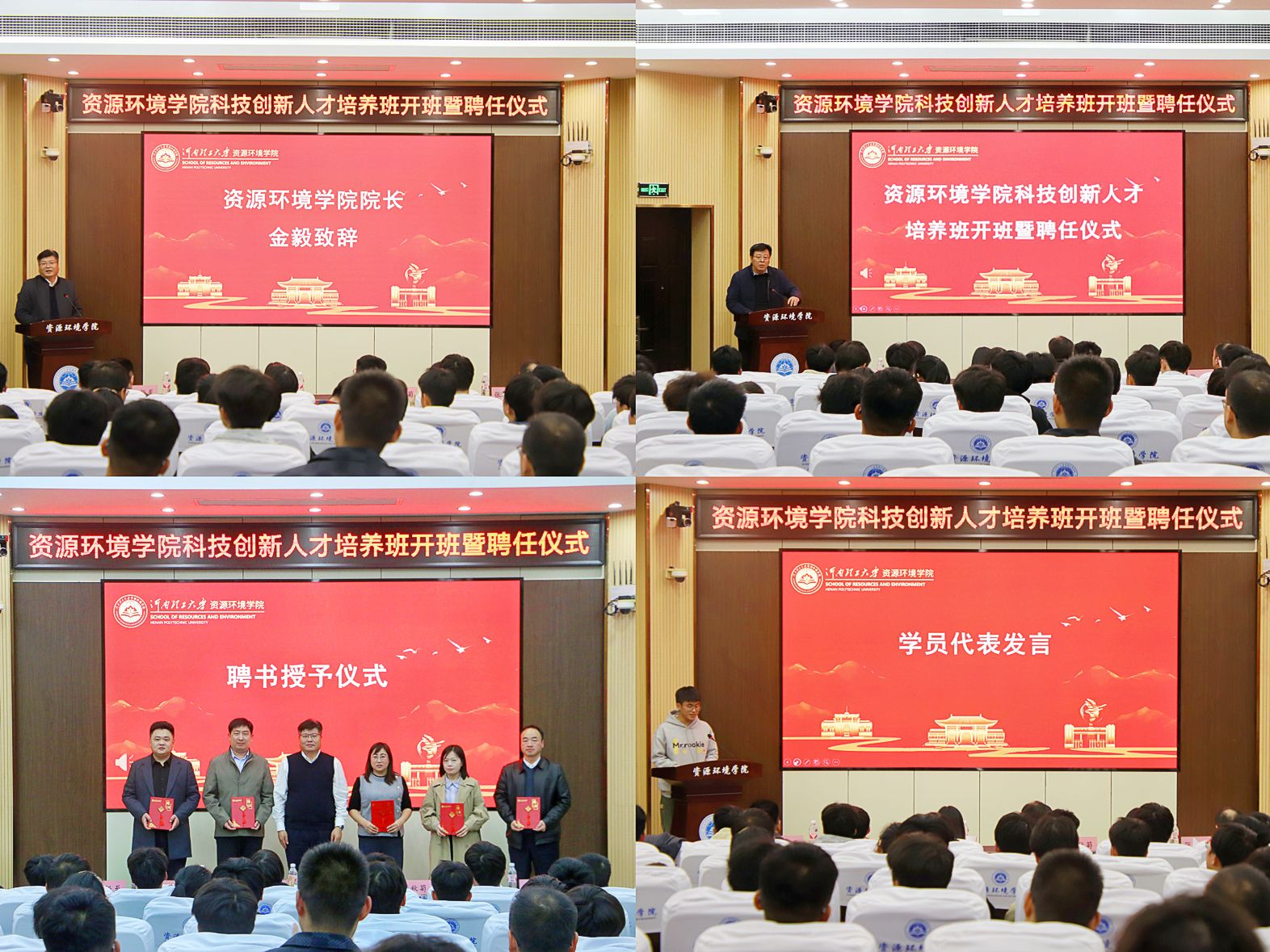 在资环楼第Ⅰ学术报告厅举办了科技创新人才培养班开班暨聘任仪式。院长金毅,校团委社团管理与创新实践部部长莫小华,教务处实践科科长张秋菊,澳门六合彩开奖网