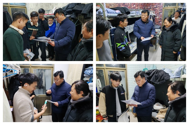 党委副书记孙付伟以及2021级毕业班辅导员王静老师深入学生宿舍,为每一位考研学子送上了真挚的关怀与鼓励。他们逐一走访了考研学生的宿舍,每到一处,孙付伟都亲切地询问学生们的备考情况,了解他们在学习、生活上的困难和需求,并鼓励他们要保持良好的心态,合理安排复习时间,注意身体健康,确保以最佳状态迎接考试。