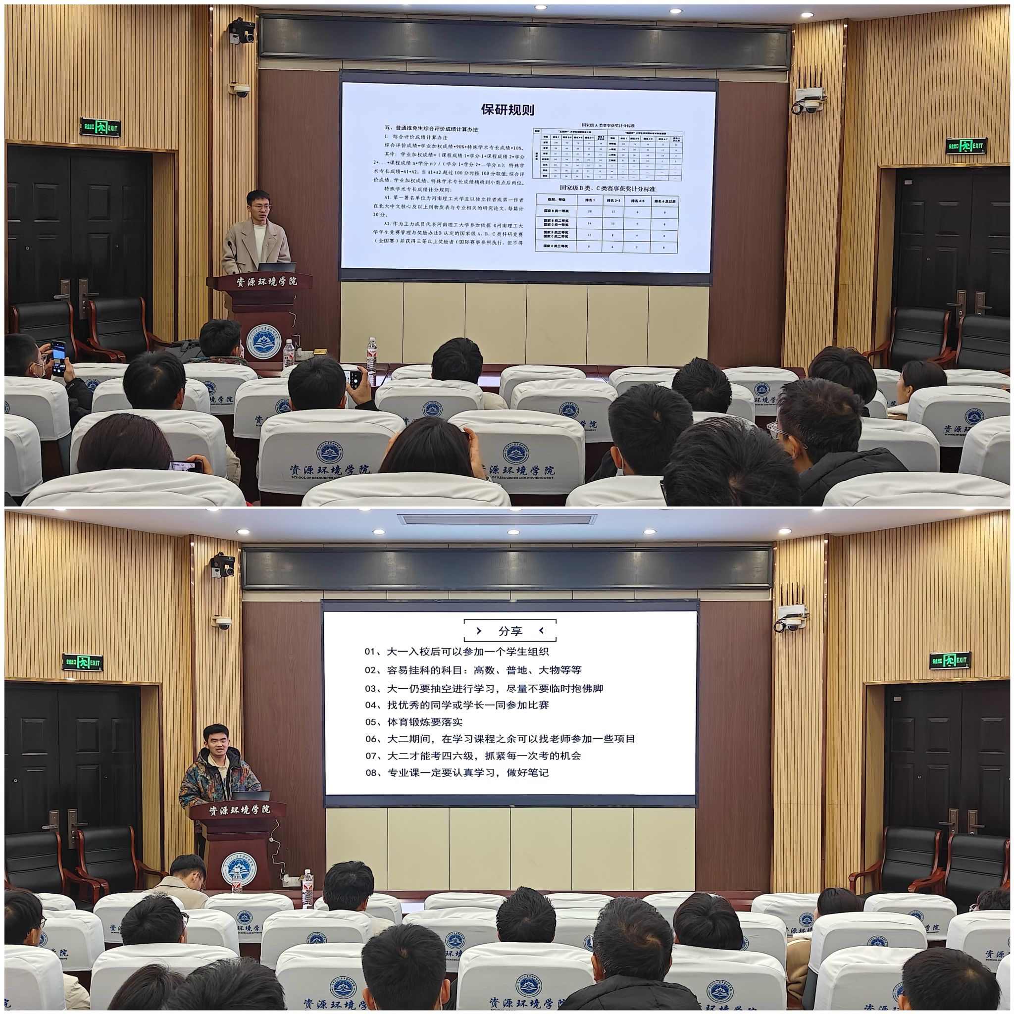 于资环楼第Ⅰ学术报告厅举行保研经验交流会。2位来自2021级的优秀毕业生代表受邀到场,120余名同学参加。