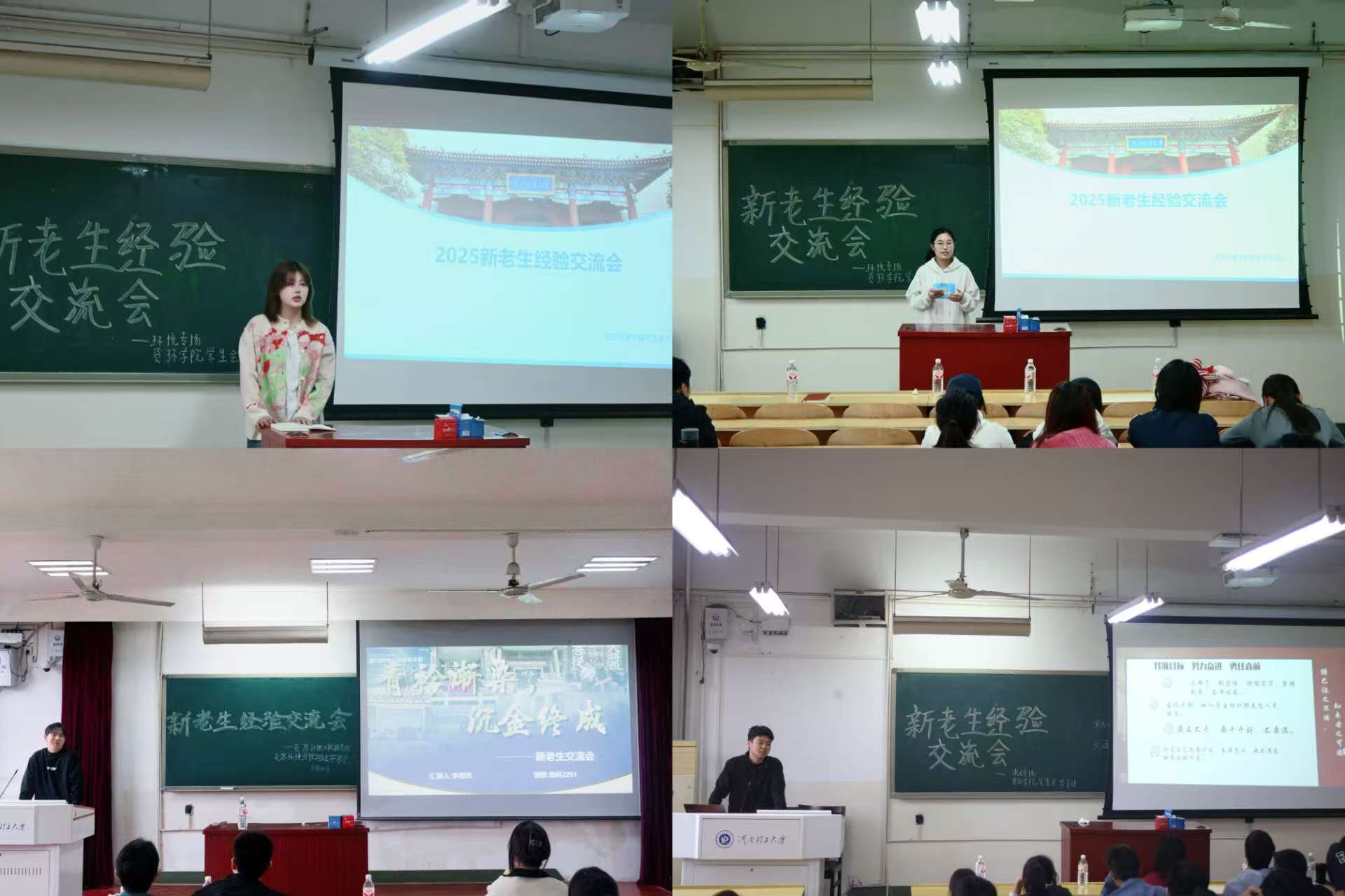 104、402和502教室举办新老生经验交流会。活动邀请2022级、2023级多位成绩优异、综合素质突出的优秀学生代表参与分享,2025级新生前来参加交流。