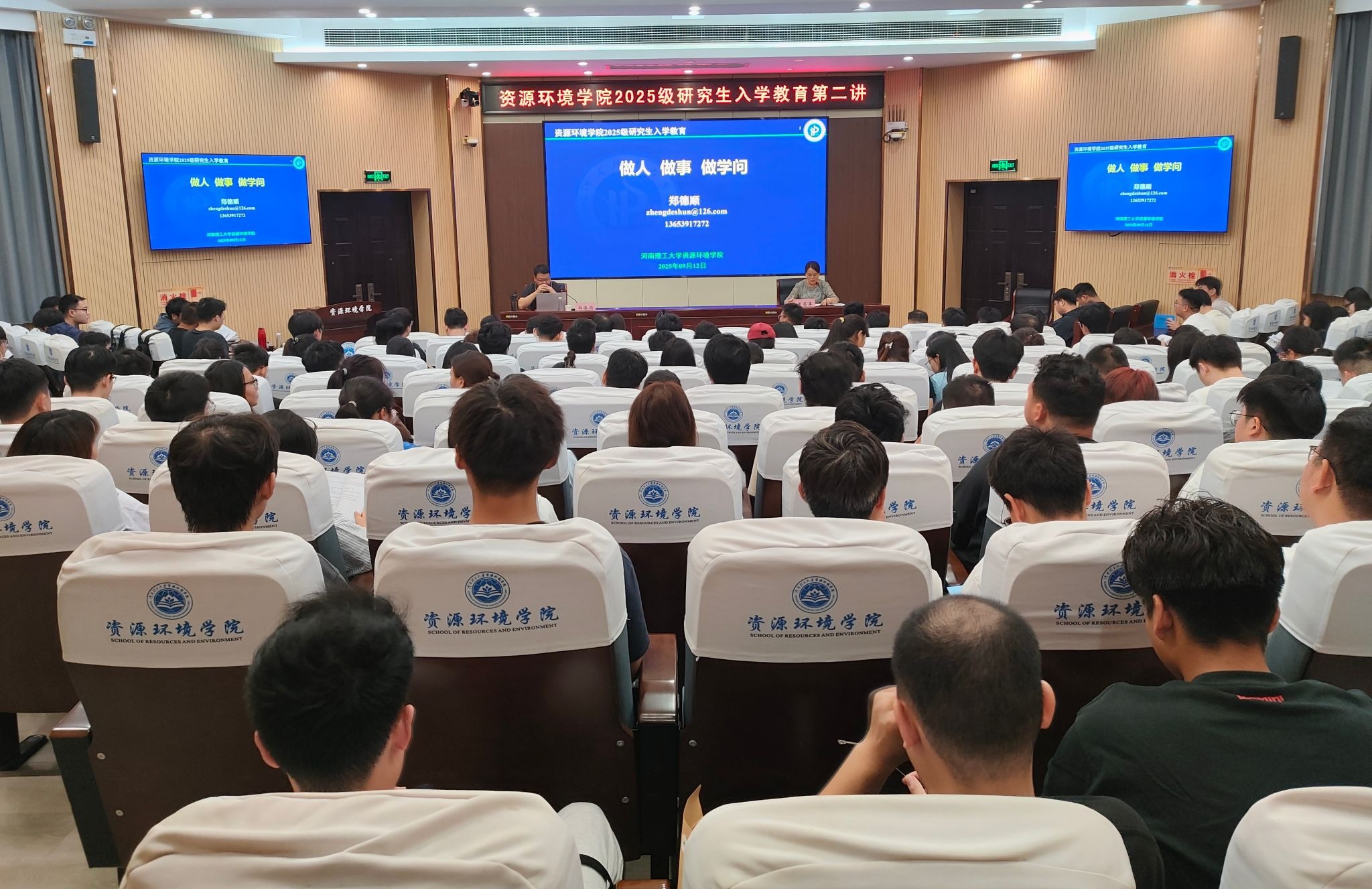 在第Ⅰ学术报告厅召开了2025级研究生入学教育第二讲。讲座以“做人做事做学问”为主题,由副院长郑德顺授课,150余名新生参加。